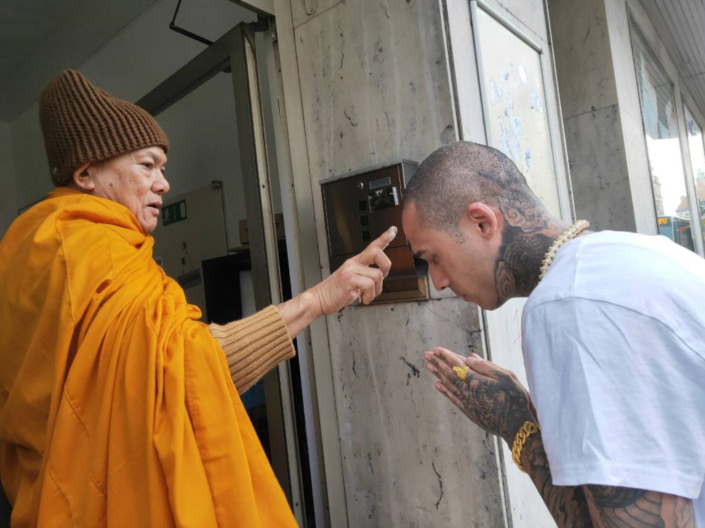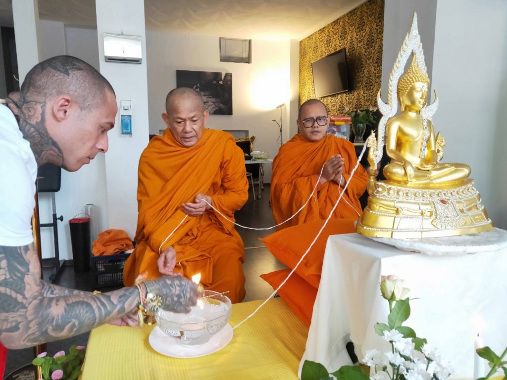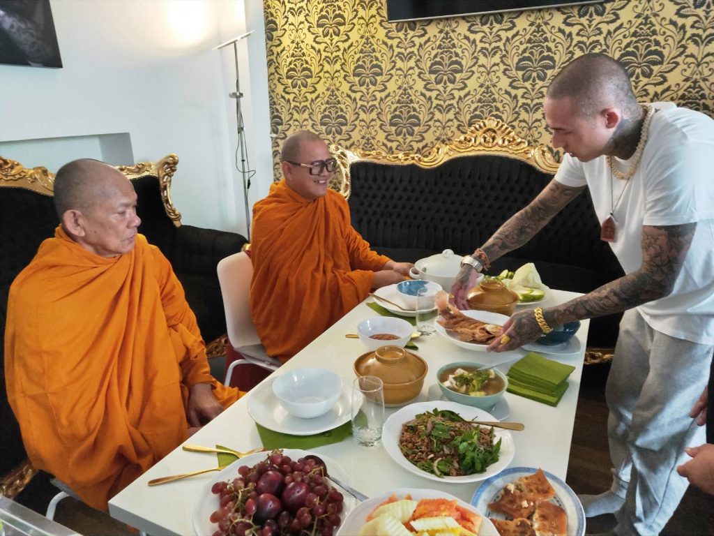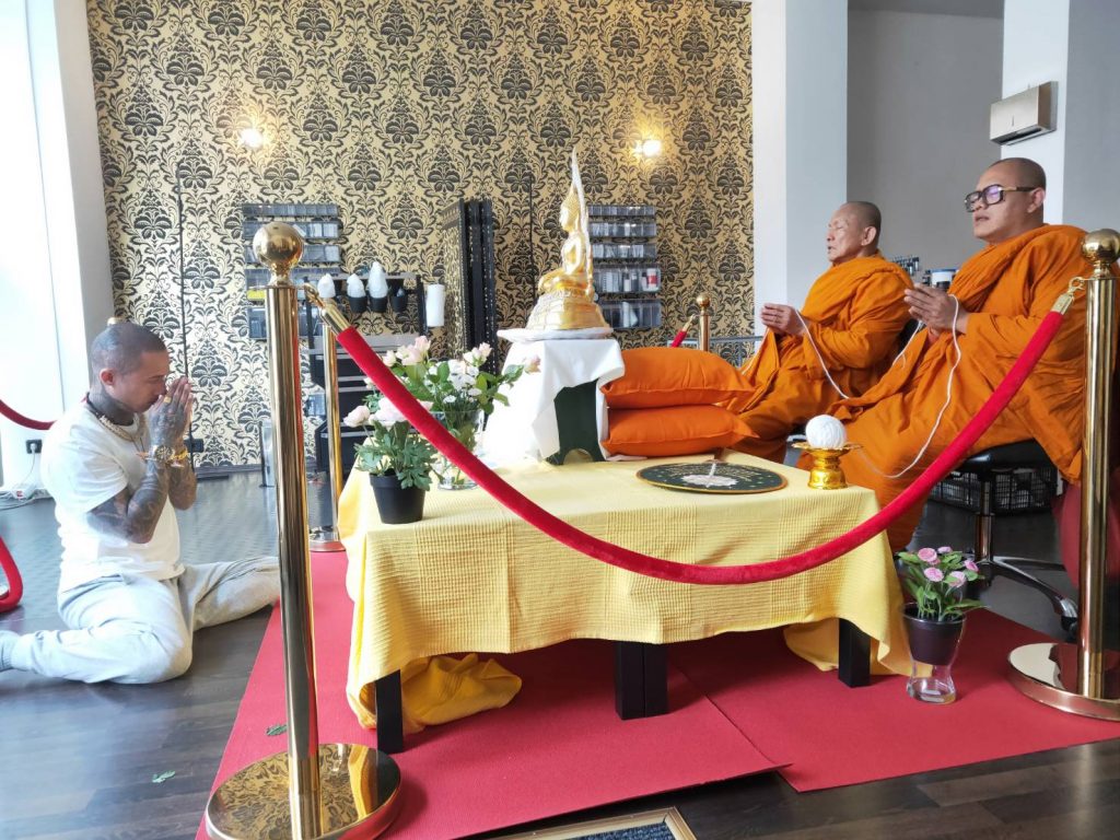 Aus Thailand reisten Mönche an, um mein Studio in einer traditionellen buddhistischen Zeremonie zu segnen. Diese Weihe symbolisiert Schutz, Reinheit und den tiefen Respekt vor der Kunst des Tätowierens.
